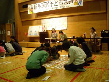 今年も、深沢区民センターで新年深沢子ども大会が行われました。深沢児童館と深沢図書館の主催で行われるこのお祭りは、もちつきがあったり、いろいろな遊びコーナーがあったりしますが、一番の盛り上がりを見せるのが「犬棒カルタ大会」と「百人一首大会」です。近隣の、東深沢小学校、等々力小学校、学芸大学附属世田谷小学校などと深沢小学校の子どもたちが参加して行われます。今年もたくさんの参加チームの中から、深沢小学校の3年生のチームが犬棒カルタで4位(57チーム中)、4年生のチームが百人一首で準優勝(21チーム中)という輝かしい成績を収めました。おめでとう!