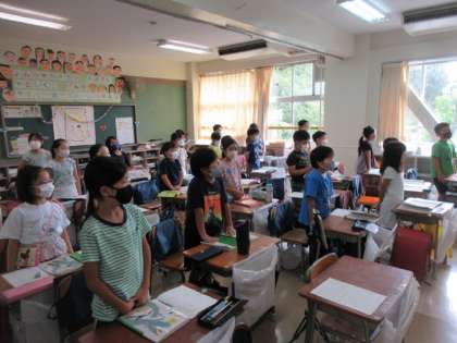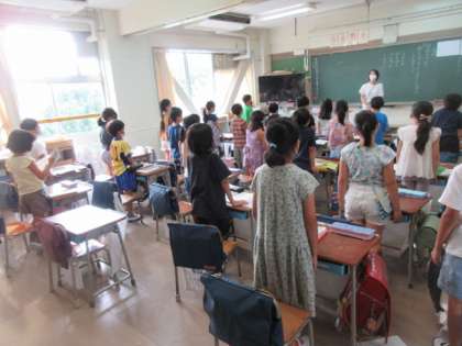 詩の音読。全文を覚えていて、暗唱している子もいます。リズムよく読むことができました。