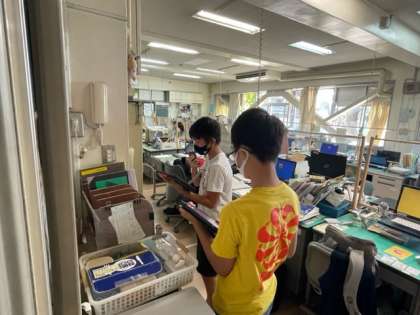 今朝は校内放送による朝会でした。校長先生からは、最近の印象に残った新聞記事についてのお話がありました。続いて、ピアノのコンクールとソフトテニスの大会でよい成績をおさめた児童の表彰がありました。代表委員会からは、展覧会のスローガンについてのお知らせがありました。今週の生活目標は、自分からあいさつをしようです。