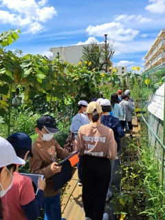 伊藤先生に様々な野菜の説明を聞いたり飼育している動物の生態を聞いたりしました。畑の植物の写真も撮影することができました。