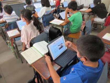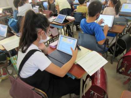 タブレットで検索して深沢の地名の由来を調べています。ちなみに「深みのある沢のあるところ」だそうです。