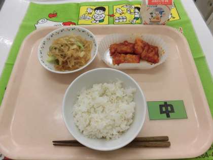 【献立】麦ごはん・いかのチリソース・春雨サラダ・牛乳