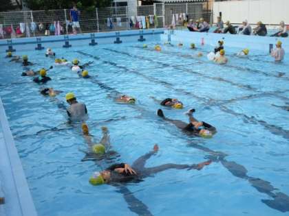 6年生が不意に河川等に落ちたことを想定した学習です。ぬれた衣服の重みやペンとボトル等を使って水に浮く感覚を体感しました。6年生の深小のプールでの学習はこれで終了です。