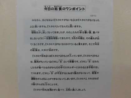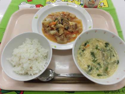 【献立】ごはん・スタミナ炒め・にらたまスープ・牛乳