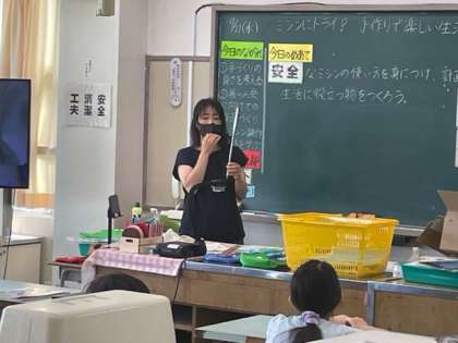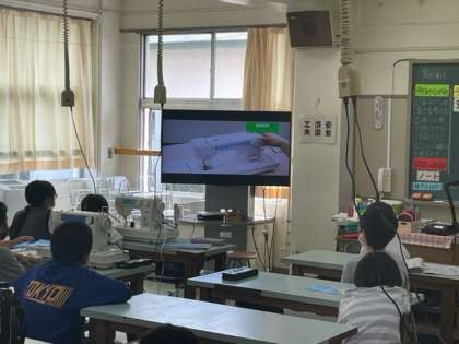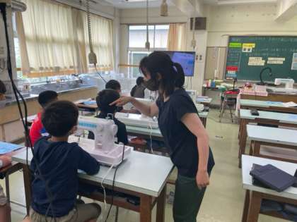 ミシンにトライ!手作りで楽しい生活。作業の前にミシンの仕組みを丁寧に確認しました。続いて、正しい手順で上糸と下糸を正しくかけました。