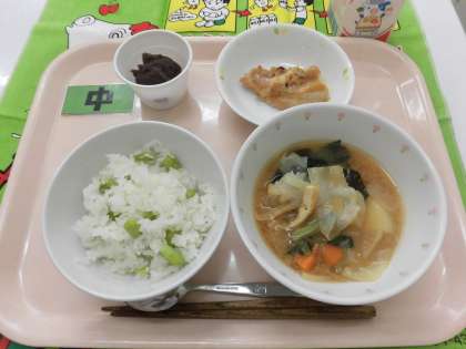 【献立】枝豆ごはん・とり肉の照り焼き・具だくさんみそ汁