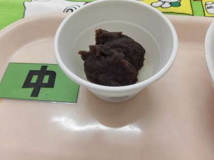 明日はお彼岸です。そこで今日の給食はお彼岸にちなんだデザートを作りました。
