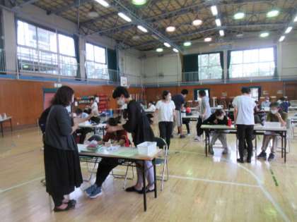 「心と体の健康を考える会」学校保健委員会を保護者の皆様にもご参加いただき、開催することができました。スクール・カウンセラーの廣野先生に講師をしていただき、疑似体験をしながら有意義な研修ができました。
