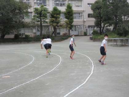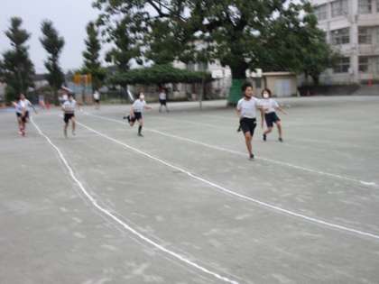 連合運動会に向けて今日はリレーの朝練習でした。男女各4名の選手がバトンパスなどの練習に真剣に取り組んでいました。