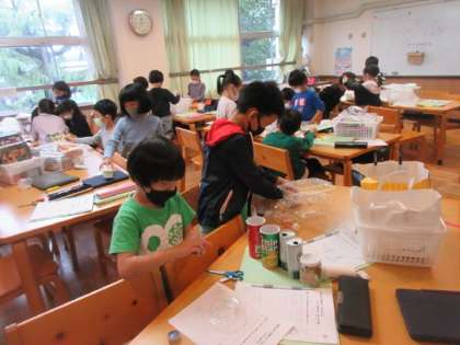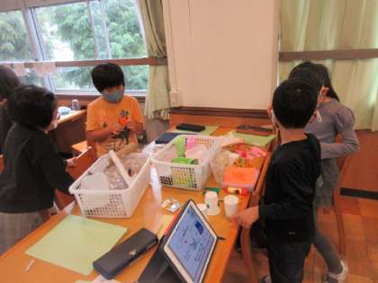 おもちゃ作りの授業も終盤。子どもたちの思いが少しずつ形になってきています。