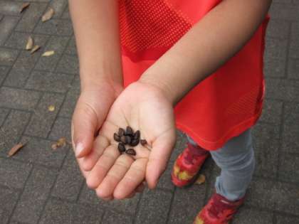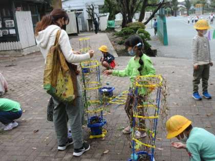 半年間大切に育ててきたアサガオ。今日は種とつるをとりました。お家の方にも手伝っていただきました。