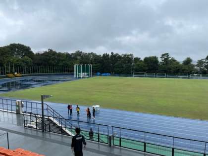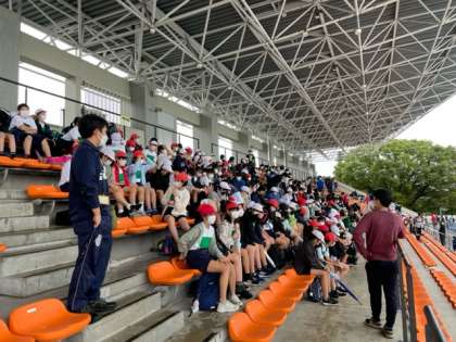 連合運動会の会場に到着しました。ここは2020東京大会のアメリカ選手団のキャンプ地として使われたので、正面スタンドに大きな屋根が付くなど、整備がされました。