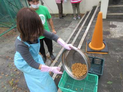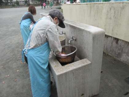 小雨が降る中、地域や保護者の皆様がぎんなん洗いなどの作業をしてくださいました。実がきれいになるように手洗いを繰り返しされていました。子どもたちへの思いが込められています。
