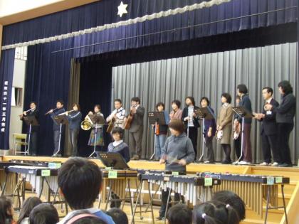 先生 「トップ・オブ・ザ・ワールド」:いろいろな楽器がありました。ドラム、ピアノ、キーボード、フルート、ホルン、木琴、鉄琴、打楽器、ギター・・。