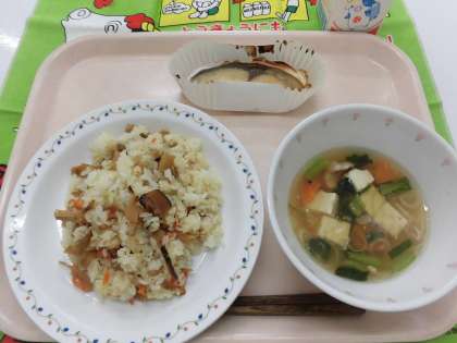 【献立】ちらしずし・魚の西京焼き・吉野汁・牛乳