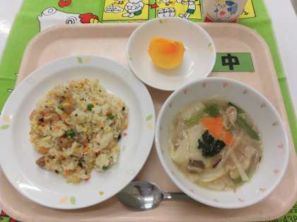 【献立】チャーハン・ワンタンスープ・柿・牛乳