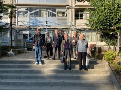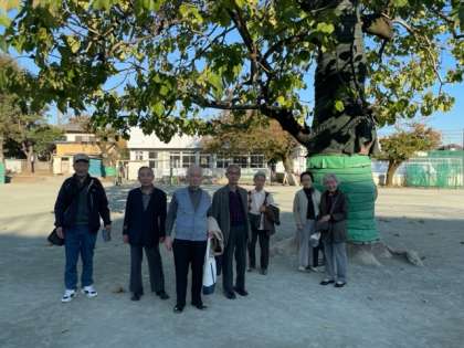 昭和25年3月に卒業した皆さんが、同窓会の帰りに深沢小学校のシンボルツリー、桐の木を見にいらっしゃいました。当時はもう少し桐の木は細かったこと、1クラス55人いたこと、保健室前の階段は当時のまま変わらないことなど、色々なことを教えてくださいました。これからもどうぞお元気でお過ごしくださいね。
