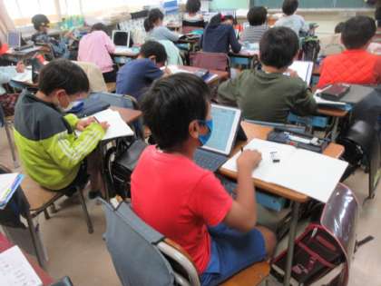 タブレットを使ってデータを表に整理する学習に取り組んでいます。