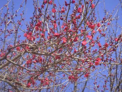 校庭の梅の花が咲き始めました。一番先に咲いているのは、第3昇降口前の紅梅の花です。まだまだ寒さは厳しいですが、校庭の木々たちはもう春の準備を始めています。