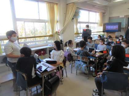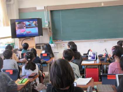 スーパーマーケットの鮮魚売り場の方の工夫の授業。先生が現地に行ってお店の方に協力していただいて撮影した写真や動画は子どもたちの学習に大変効果的で、子どもたちが意欲的に学習していました。