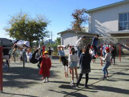 気持ちのよい晴天です。子どもたちは元気の遊んでいます。