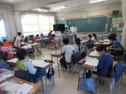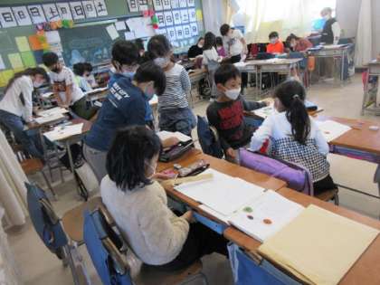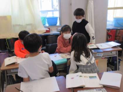 説明文で段落ごとに要旨について班ごとに活発に話し合って、考えをまとめていました。