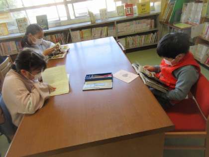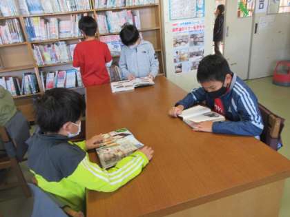読書の秋。図書室で落ち着いて読書をしています。