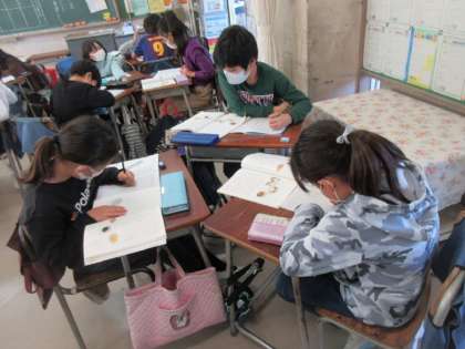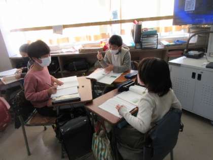 説明文を読み、グループで話し合いながら内容を整理しています。対話的な学びをしています。
