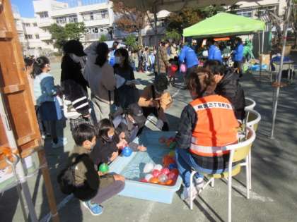 開門から大勢の子どもたちが来ています。朝9時、第15回ぎんなんまつりがスタートしました。