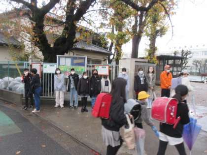 環境美化委員の5,6年生が正門に立ってあいさつをしていました。日常の朝に活気が生まれていました。