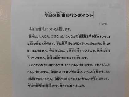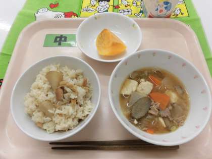 【献立】さといもごはん・豚汁・富有柿・牛乳