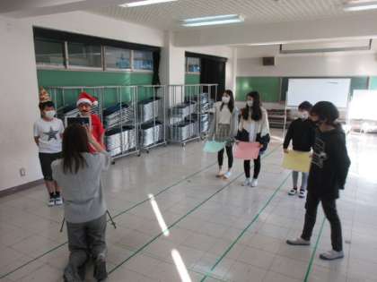 集会委員会によるクリスマス・クイズ。衣装や音響なども工夫され、すばらしい企画でした。教室にいる子どもたちとは離れたいましたが、楽しい時間が過ごせました。