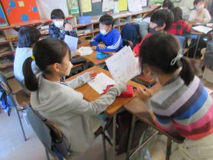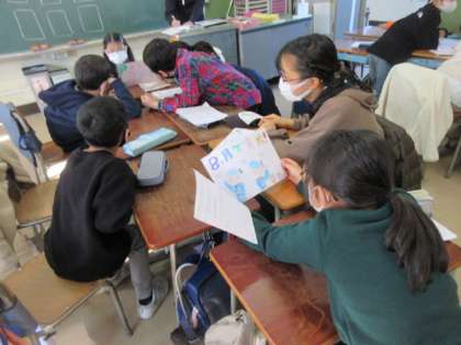 玉川上水のまとめで紙芝居を作りました。どれも力作で友達の紙芝居に興味津々です。