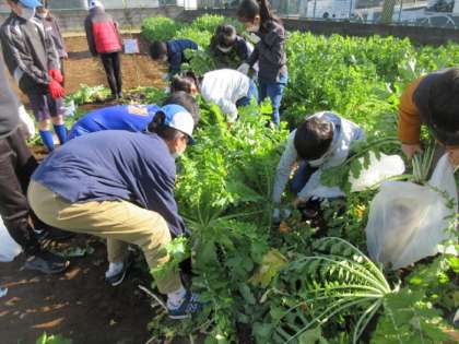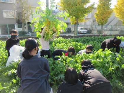大根が旬の季節になりました。大きな大根を抜くのは一苦労ですが、収穫後の子どもたちははいい表情をしています。家で旬を味わってください。