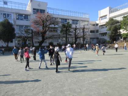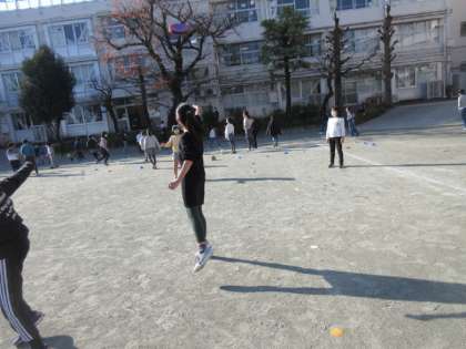 ぽかぽか陽気の昼休み、友達と楽しい時間を過ごしています。