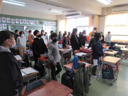 今年最後の音楽朝会は年末ということでベートーベンの第九をドイツ語で歌いました。
