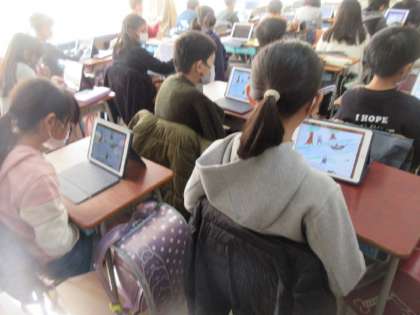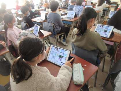 玉川上水について4コマ漫画にまとめた作品をロイロノートを使って見合っています。