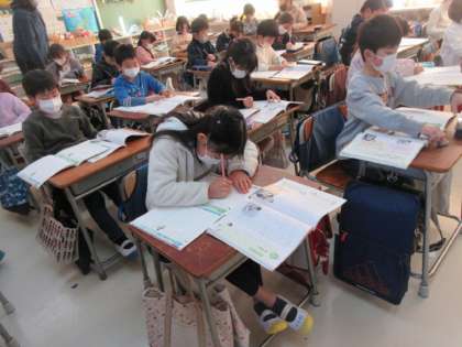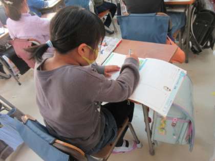 今日の学習のテーマは「約束」。学習したことをもとに道徳ノートに自分の考えをまとめて今s。