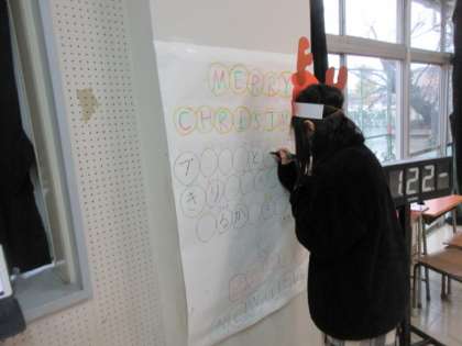 今年最後の集会はクリスマス企画。集会委員のゲームでみんなで楽しい時間を過ごすことができました。
