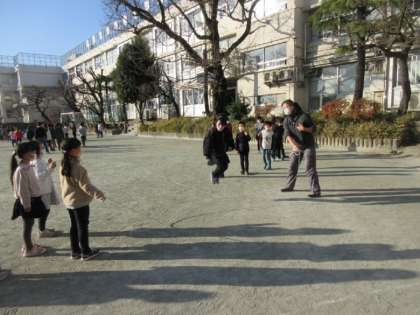 1年生から3年生が大縄跳びをしました。どのクラスも2学期より上手に跳べるようになっていました。1年生の成長にはびっくりです。