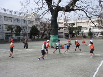 チームワークや一人ひとりの動きがよく、パスでボールをつなぎながらポートボールを楽しんでいます。