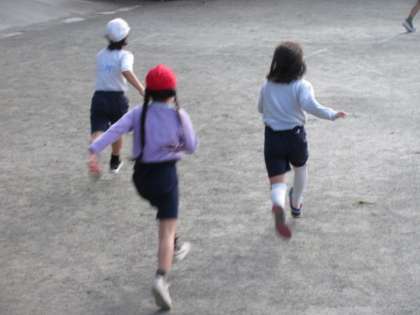 まだ空気は冷たいですが、子どもたちは授業の初めに元気に鬼ごっこをしています。みんなでやるから楽しいです。
