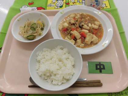 【献立】ごはん・家常豆腐・白菜の中華サラダ・牛乳