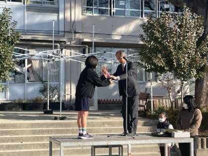 今日はミニバスケットとバレエのコンクールでよい成績をおさめた児童の表彰がありました。