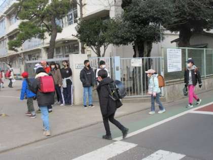 環境美化委員によるあいさつ運動です。自分たちでできることに取り組んでいうます。