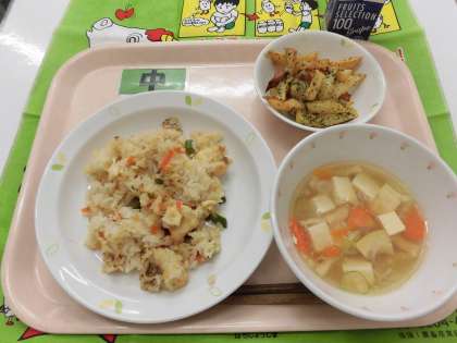 【献立】鯛めし・吉野汁・青のりフライドポテト・ぶどうジュース