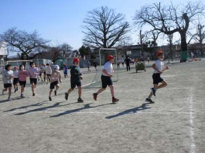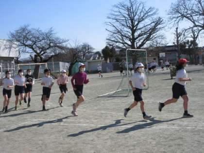 6年生が体育の時間に持久走をしています。今日が持久走週間最後の日です。