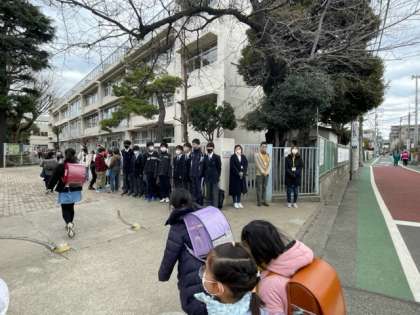 今朝は北風が冷たいですが、町会、深沢中学校や保護者の皆さんと一緒に、元気にあいさつをしました。