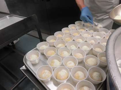 冬のこの時期だけのデザート、「おからのスノーボール」を作りました。給食室の様子をご紹介します。