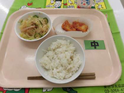 【献立】麦ごはん・いかのチリソース・春雨サラダ・牛乳